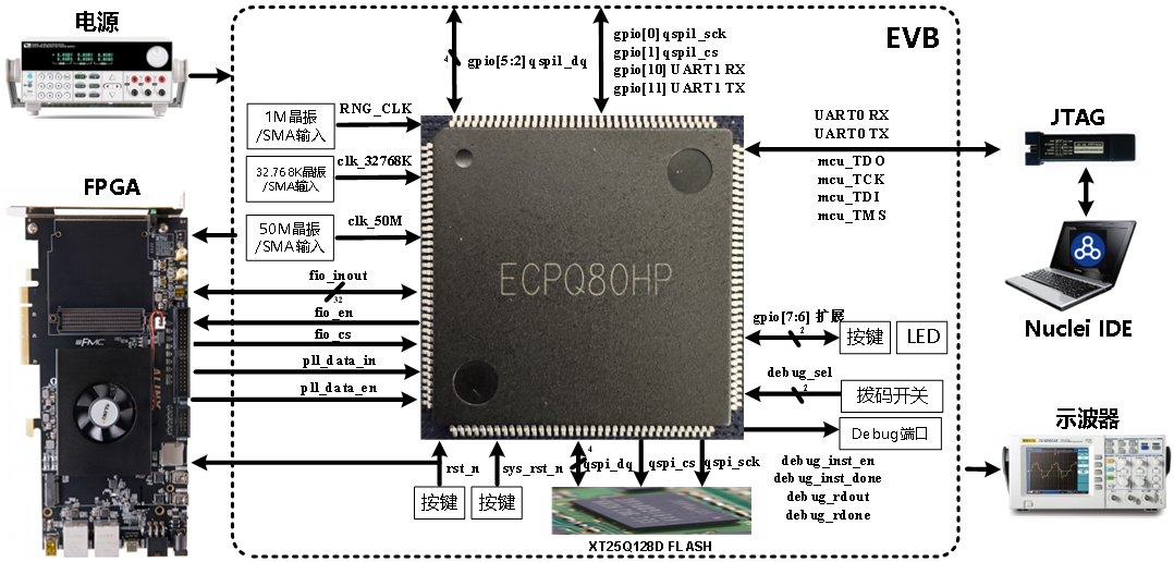 ECPQ80HP 验证板可以外接多个测试设备,如下图所示。
